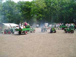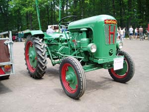 Holdertreffen am 25./26.06.2005 in HelmerothArtikel aus der Rhein- Zeitung Holder-Treffen auf der Höhe 80 Kleintraktoren der Kult-Marke kamen zusammen - In neun Stunden aus Biedenkopf angereistDie Trecker der Firma Holder genießen mittlerweile Kultstatus. Jetzt trafen sich die Liebhaber dieser Fahrzeuge auf dem Sportplatz in Helmerother Höhe. Dabei gab es 80 Kleintraktoren zu bewundern. HELMEROTH. "Ein Holder geht durch dick und dünn, titelt die Werbung. Die Einachs- und sonstigen Fahrzeuge des Traditionsunternehmens genießen unter Kennern einen legendären Ruf. 80 Kleintraktoren unterschiedlichster Bauart gab es jetzt auf Initiative der Holder-Freunde "Kroppacher Schweiz" auf dem Sportplatzgelände in Helmerother Höhe zu bewundern. 1888 gründeten die Gebrüder Holder ihr Unternehmen in Metzingen bei Stuttgart. Die "Holder Spritze", ein selbsttägiges Rückenspritzgerät, machte die Firma bekannt bei Winzern auf der ganzen Welt. 1930 entwickelte man den ersten universell einsetzbaren Einachstraktor mit seinen vielen technischen Innovationen. 20 Jahre später überzeugte ein "Holder Diesel" nicht nur die Fachwelt. 1953 verließ der erste Vierrad-Schlepper das Werk Metzingen. Im Jahr darauf eroberte der "A 10", ein bahnbrechender Allrad-Traktor mit Knicklenkung, den Markt. Bis heute dient er als Grundlage für die Produktion von Kleinfahrzeugen mit einer enormen Variationsbreite. Die auf der Helmerother Höhe präsentierten Geräte waren teilweise aus eigener Kraft angereist. Eine bildschöne Schäferhütte der Marke Eigenbau hinter einem 12PS Einachser hatte die 120 Kilometer von Biedenkopf in den Westerwald in neun Stunden bewältigt. Die Organisatoren konnten bei diesem neunten Holder- Treffen Gleichgesinnte aus ganz Deutschland sowie Holland und Belgien begrüßen. Vor zehn Jahren haben sich viele Sammler und Liebhaber zusammengeschlossen und veranstalten seither regelmäßig Treffen der "Holder-Familie". Schon der erste Blick auf den Fahrzeug-Park bewies: Holder-Geräte sind ungeheuer vielseitig. Ihr Haupteinsatzgebiet liegt in kleineren Betrieben der Landwirtschaft und des Weinbaus. Viele der stolzen Besitzer folgen den schwäbischen Tüftlern und bauen ihr gutes Stück nach eigenen Vorstellungen um. Vorgeführt wurden ein Holzspalter und eine Säge. Beide Geräte werden von einem Holder angetrieben und sind auch in schwierigem Gelände selbststätig manövrierbar. Selbst Baumstämme von 60 Zentimeter Durchmesser zerteilte das Bedienpersonal in Sekundenschnelle. Das Treffen diente selbstverständlich auch dem Tausch von Ersatzteilen und Ausrüstungsgegenständen. Wer eines der im typischen grünen Farbton gehaltenen Fahrzeuge besitzt, will es natürlich auch ausprobieren und seinen Mitmenschen zeigen. So startete an beiden Veranstaltungstagen eine Holder-Kolonne zu einer Rundfahrt durch die Kroppacher Schweiz. An der Nisterbrücke bei Helmeroth fand dann eine regelrechte Parade statt. Die Veranstaltung war ein voller Erfolg, so Karl-Heinz Ullrich von den Holder-Freunden "Kroppacher Schweiz". Das zwölfköpfige Organisatorenteam hatte an alles gedacht und für einen reibungslosen Ablauf gesorgt. Und schon jetzt freut man sich auf ein Wiedersehen beim Jubiläumstreffen im kommenden Jahr. (bt) Auch ich schließe mich dem Reporter an und sage Danke für das gelungene Wochenende im Westerwald. |