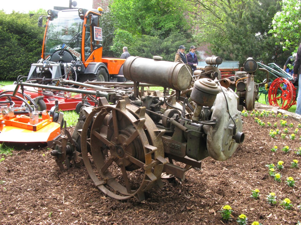 die mit ihren Traktoren, Geräten und Planwagen in