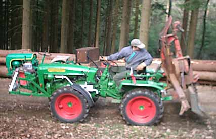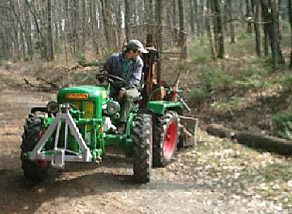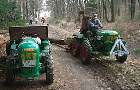 Beide Schlepper sind Baujahr 1964. An unserem Holder A20 ist, wie auf den Bildern zu sehen, eine 4 Tonnen Forstseilwinde montiert. Der Schlepper ist sehr gut für leichte Forstarbeiten mit Winde geeignet, da er sehr wendig ist. Mit dem Holder A12 fahren wir dann das gespaltene Brennholz heim. Von Mark Fröhling |
