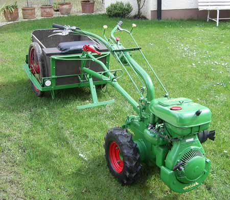 Hallo, Das ist mein Holder E6 G Baujahr 1966 mit 5 PS. Ich habe ihn im Sommer 2005 restauriert. Der Anhänger ist ein Eigenbau und kann auch an ein Fahrrad angehängt werden. Mit freundlichen Grüßen, Bastian Hofmann |