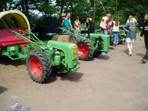 Holdertreffen am 25./26.06.2005 in HelmerothArtikel aus der Rhein- Zeitung Holder-Treffen auf der Höhe 80 Kleintraktoren der Kult-Marke kamen zusammen - In neun Stunden aus Biedenkopf angereistDie Trecker der Firma Holder genießen mittlerweile Kultstatus. Jetzt trafen sich die Liebhaber dieser Fahrzeuge auf dem Sportplatz in Helmerother Höhe. Dabei gab es 80 Kleintraktoren zu bewundern. HELMEROTH. "Ein Holder geht durch dick und dünn, titelt die Werbung. Die Einachs- und sonstigen Fahrzeuge des Traditionsunternehmens genießen unter Kennern einen legendären Ruf. 80 Kleintraktoren unterschiedlichster Bauart gab es jetzt auf Initiative der Holder-Freunde "Kroppacher Schweiz" auf dem Sportplatzgelände in Helmerother Höhe zu bewundern. 1888 gründeten die Gebrüder Holder ihr Unternehmen in Metzingen bei Stuttgart. Die "Holder Spritze", ein selbsttägiges Rückenspritzgerät, machte die Firma bekannt bei Winzern auf der ganzen Welt. 1930 entwickelte man den ersten universell einsetzbaren Einachstraktor mit seinen vielen technischen Innovationen. 20 Jahre später überzeugte ein "Holder Diesel" nicht nur die Fachwelt. 1953 verließ der erste Vierrad-Schlepper das Werk Metzingen. Im Jahr darauf eroberte der "A 10", ein bahnbrechender Allrad-Traktor mit Knicklenkung, den Markt. Bis heute dient er als Grundlage für die Produktion von Kleinfahrzeugen mit einer enormen Variationsbreite. Die auf der Helmerother Höhe präsentierten Geräte waren teilweise aus eigener Kraft angereist. Eine bildschöne Schäferhütte der Marke Eigenbau hinter einem 12PS Einachser hatte die 120 Kilometer von Biedenkopf in den Westerwald in neun Stunden bewältigt. Die Organisatoren konnten bei diesem neunten Holder- Treffen Gleichgesinnte aus ganz Deutschland sowie Holland und Belgien begrüßen. Vor zehn Jahren haben sich viele Sammler und Liebhaber zusammengeschlossen und veranstalten seither regelmäßig Treffen der "Holder-Familie". Schon der erste Blick auf den Fahrzeug-Park bewies: Holder-Geräte sind ungeheuer vielseitig. Ihr Haupteinsatzgebiet liegt in kleineren Betrieben der Landwirtschaft und des Weinbaus. Viele der stolzen Besitzer folgen den schwäbischen Tüftlern und bauen ihr gutes Stück nach eigenen Vorstellungen um. Vorgeführt wurden ein Holzspalter und eine Säge. Beide Geräte werden von einem Holder angetrieben und sind auch in schwierigem Gelände selbststätig manövrierbar. Selbst Baumstämme von 60 Zentimeter Durchmesser zerteilte das Bedienpersonal in Sekundenschnelle. Das Treffen diente selbstverständlich auch dem Tausch von Ersatzteilen und Ausrüstungsgegenständen. Wer eines der im typischen grünen Farbton gehaltenen Fahrzeuge besitzt, will es natürlich auch ausprobieren und seinen Mitmenschen zeigen. So startete an beiden Veranstaltungstagen eine Holder-Kolonne zu einer Rundfahrt durch die Kroppacher Schweiz. An der Nisterbrücke bei Helmeroth fand dann eine regelrechte Parade statt. Die Veranstaltung war ein voller Erfolg, so Karl-Heinz Ullrich von den Holder-Freunden "Kroppacher Schweiz". Das zwölfköpfige Organisatorenteam hatte an alles gedacht und für einen reibungslosen Ablauf gesorgt. Und schon jetzt freut man sich auf ein Wiedersehen beim Jubiläumstreffen im kommenden Jahr. (bt) Auch ich schließe mich dem Reporter an und sage Danke für das gelungene Wochenende im Westerwald. |
